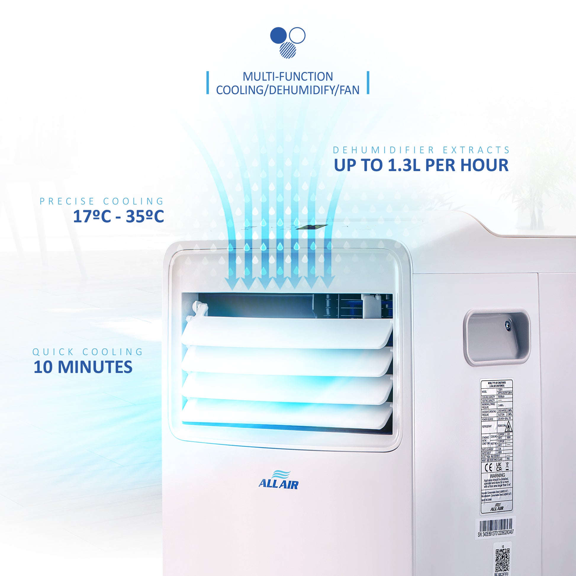 This ALLAIR 5000 BTU Mobile Air Conditioner is guaranteed to bring cool air into your home, office, gym or workspace. This air con is not just the most efficient way to cool your home, but can also function as a dehumidifier and a fan - meaning you can use it all year round, not just in the summer.